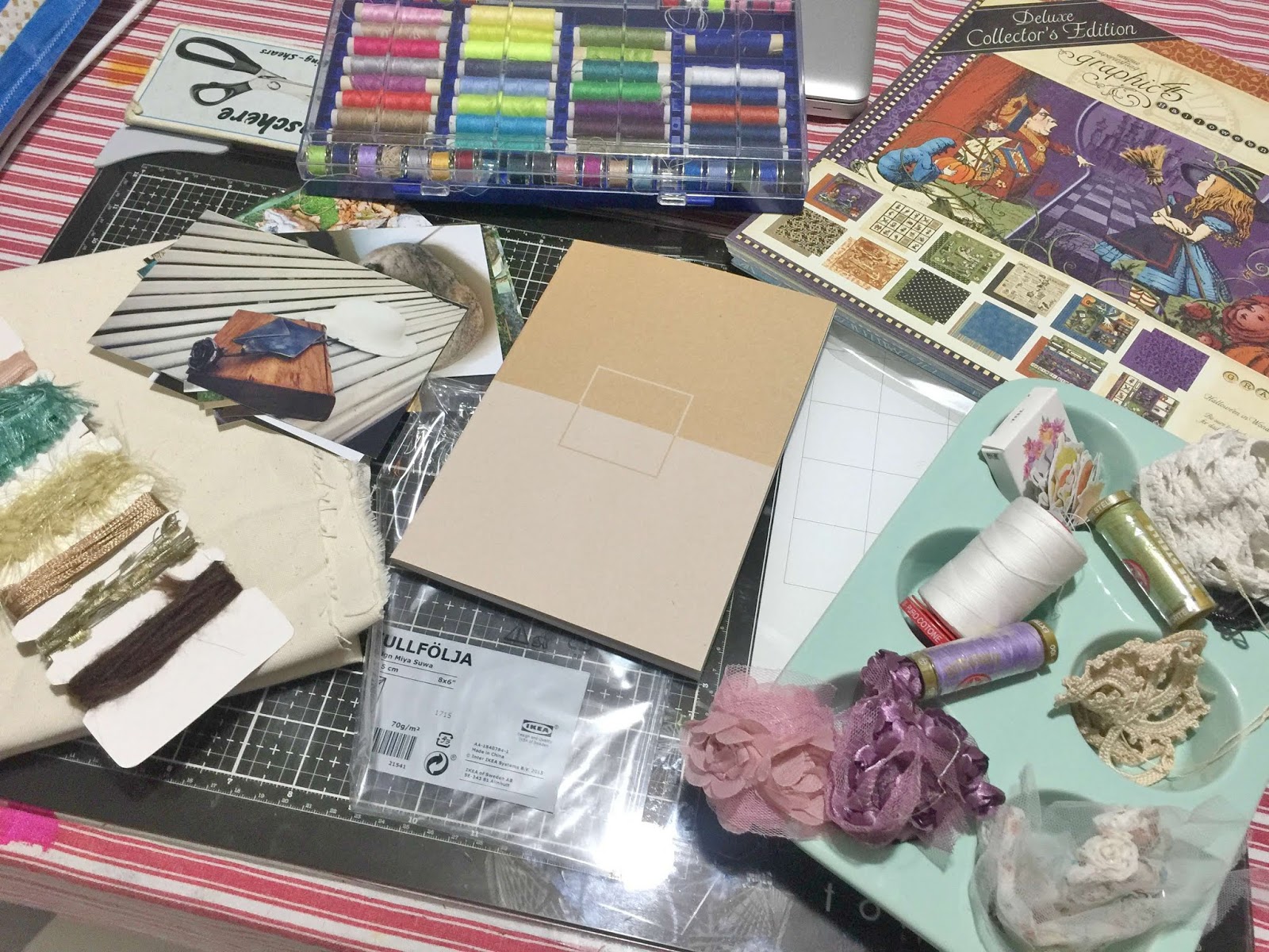 Ecco per quelle foto ho deciso di preparare una specie di journal che ho ricavato da un quaderno Ikea (si fanno anche dei quadernini carini) Qui di seguito tutti i materiali che ho pensato di utilizzare.